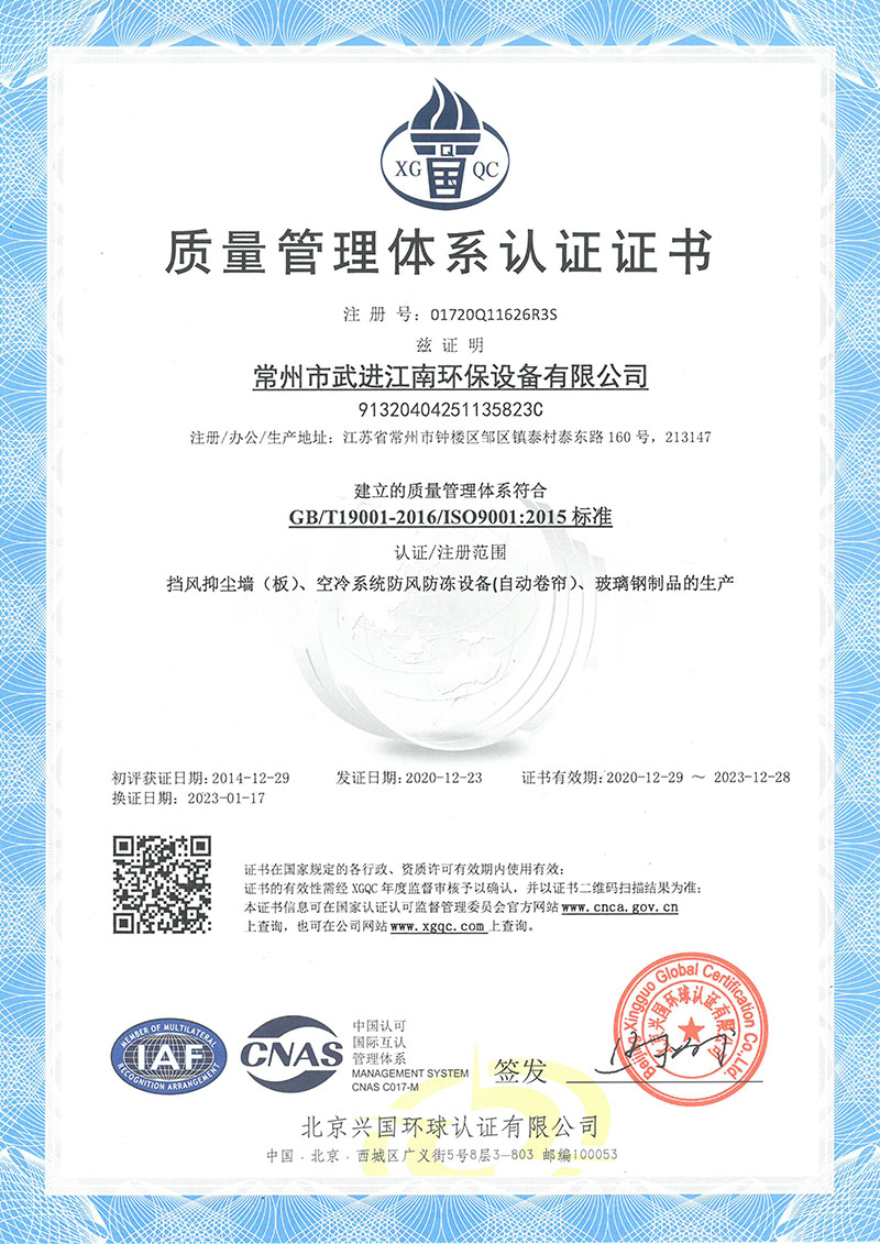 常州市武進江南環保設備有限公司成立于1978年,現占地面積1.5萬平方米,廠房面積1.2萬平方米。公司主要從事揚塵污染治理、玻璃鋼門窗的生產和銷售、焦化廢水處理等環保工程。公司自主研發的常泰牌擋風抑塵墻和擋風抑塵網板獲得國家《實用新型專利》產品認證,是目前針對各種煤場、露天料場、碼頭、堆場等揚塵污染治理先進的抑塵技術,抑塵效果達到90%以上。