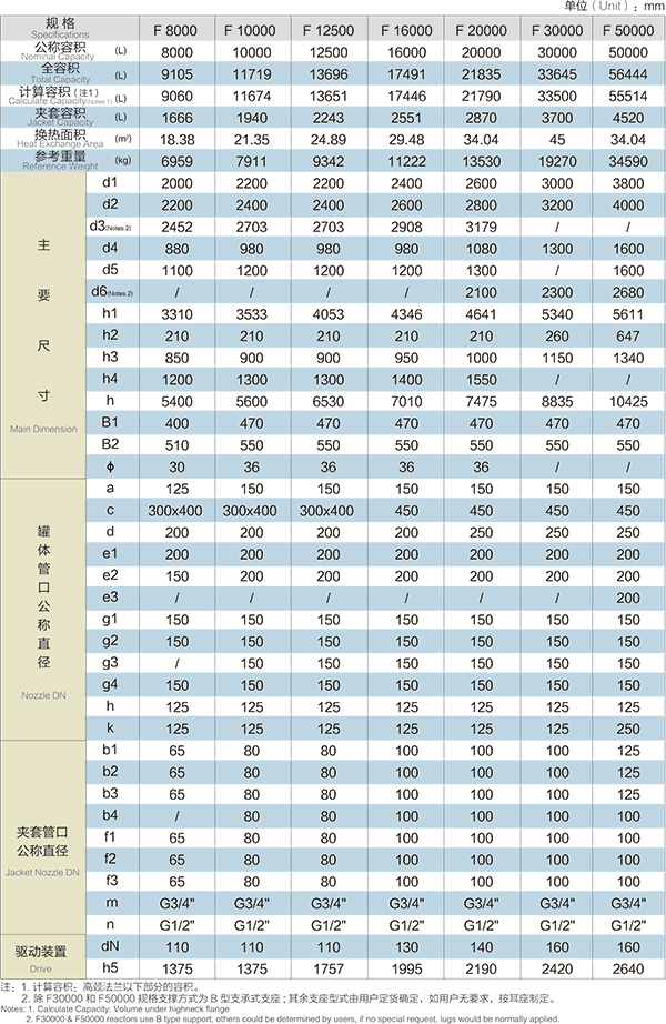 二、閉式搪玻璃反應(yīng)釜(閉式搪瓷反應(yīng)釜)(F8000L \ F10000L \ F12500L \ F16000L \ F30000L \ F50000L)