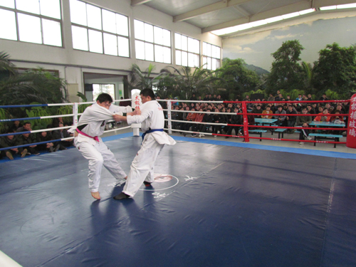 背摔、抱雙腿扛摔、抱單腿枕、抱腿功、掏腿、扣腿、揣絆功這些很專業(yè)的動(dòng)作,在我們太極這群男子漢身上卻都是那樣運(yùn)用自如。比賽期間太極公司散打隊(duì)員也上臺(tái)即興表演,更是有我們太極的“歌手”獻(xiàn)歌助興,掌聲、喝彩聲、吶喊聲、歡笑聲……此時(shí)此刻每一個(gè)太極人都無比的歡樂和驕傲。