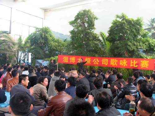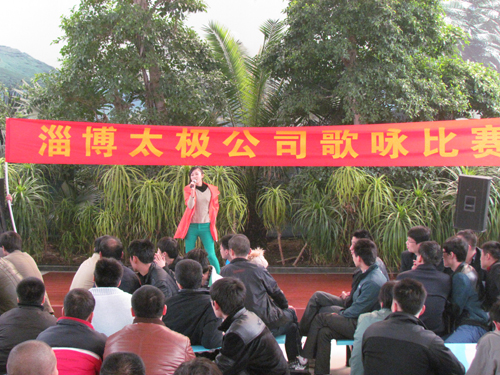 2013年4月12日下午5:00,在太極搪玻璃設(shè)備搪瓷設(shè)備公司招待所,公司文體部成功舉辦首屆太極歌詠比賽。(太極公司招待所KTV場地于今年3月份正式投入使用,演唱會標(biāo)準(zhǔn)的音響設(shè)備、高檔的無線麥克風(fēng)、智能點歌系統(tǒng)等設(shè)施全部為職工免費開放。