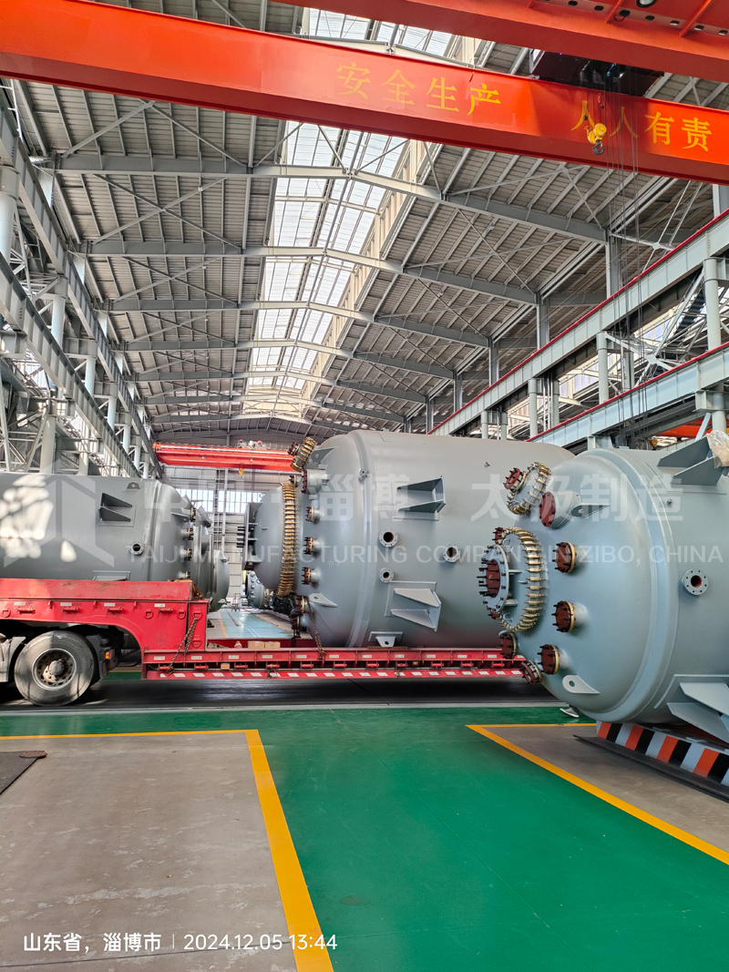 2024 年 12 月 5 日,引人注目的一幕在發貨現場上演,太極 6 萬升搪玻璃反應釜正式踏上行程。該反應釜體型龐大、工藝精湛,將為相關生產作業提供強大助力。此次發貨吸引眾多業內人士關注,它的交付有望推動行業發展邁向新高度,開啟生產新篇章。